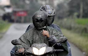 "Sebagian besar pengendara motor memakai masker dan jalan pelan-pelan. Mobil saja kalau tidak hati-hati saat mengerem, bisa selip," terang Tedi yang menetap di 23 km dari Merapi.